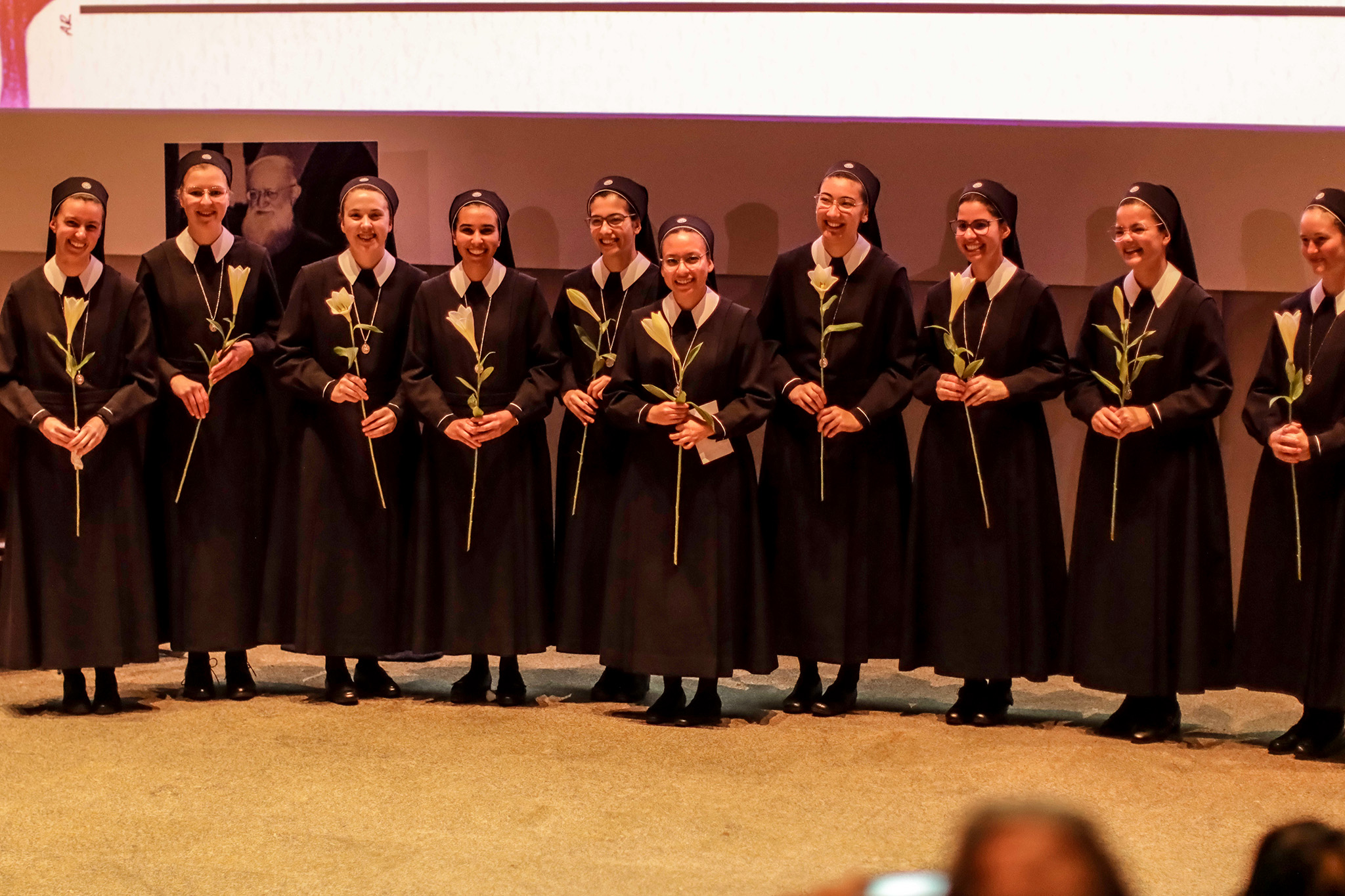 Una presentación mostró imágenes de la vida de las novicias. Invitados de distintos países, familias anfitrionas y grupos juveniles transmitieron sus saludos y felicitaciones. Las novicias dieron testimonio de su alegre comunidad y agradecieron a todos por la oración y el acompañamiento.