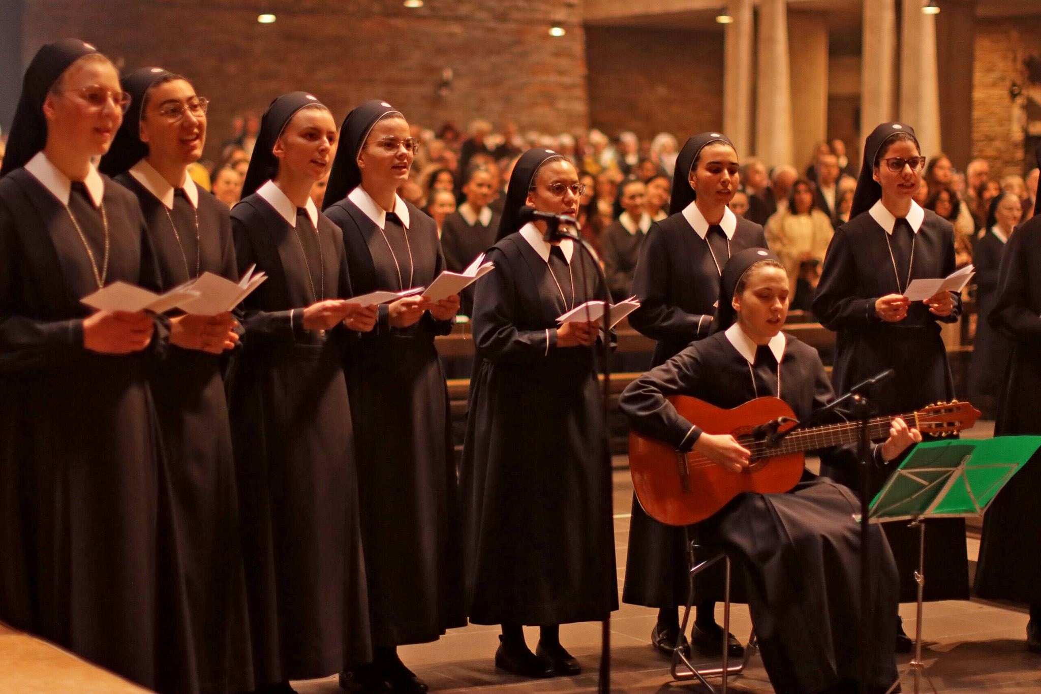 Creció la expectación, y luego las novicias entraron en la iglesia con el vestido azul oscuro, un momento de gran emoción y alegría, recibido con aplausos espontáneos. En las oraciones de intercesión presentaron las intenciones del mundo y de la Iglesia en sus lenguas maternas.
