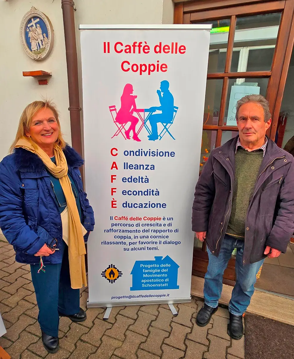 The Couple’s Café is a project created by several families from the Federation of Families of the Schoenstatt Apostolic Movement. It consists of five meetings, each lasting about two hours, featuring themes inspired by Schoenstatt’s pedagogy and derived from the initials of the word CAFFÈ: Condivisione (Sharing), Alleanza (Covenant), Fedeltà (Loyalty), Fecondità (Fruitfulness), and Educazione (Education).