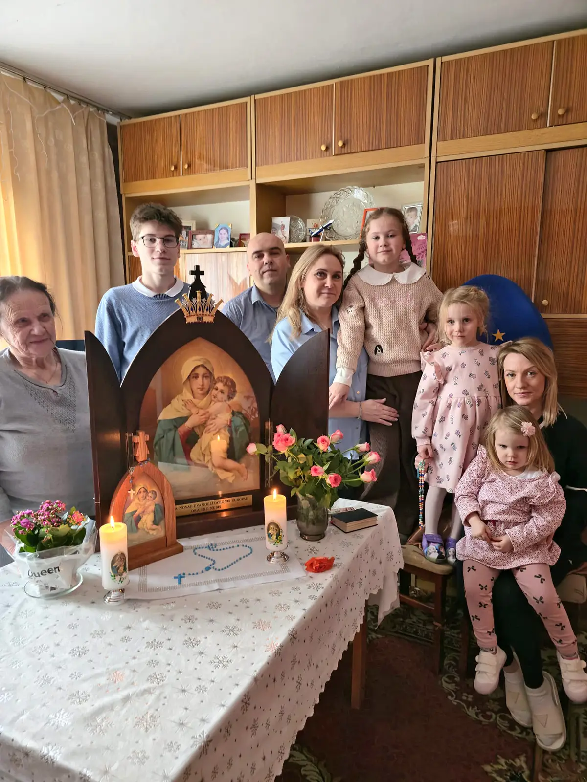 A Rainha da Europa foi também venerada em oração fora das igrejas – nas casas, os pais de uma criança com câncer rezaram na presença da Mãe Peregrina, assim como idosos e famílias inteiras.