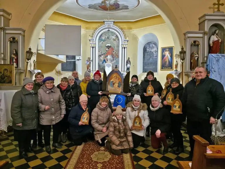 The story of Mary’s pilgrimage through the hearts of the people of our country began many years ago thanks to the MTA image, which left the shrine in Oviedo (Argentina) on July 18, 1987. The image, which is in the sacristy of St. Louis Church in Moscow, contains this valuable information: “Image No. 60. Shrine Guarantee of January 20. Blessed on 7/18/87.” Thanks to the church’s sacristan, the Pilgrim Mother found a home in the sacristy of the Lubyanka Church in Moscow, which for many decades was one of the few functioning Catholic churches in Russia. For our community, this image is the “first,” the pioneer, the one who started it all. That is why it has a special place in a stylized frame reminiscent of that of the Auxiliary Pilgrim Mother, which we use in celebrations. Through this image, we experience and understand our connection to the Schoenstatt Shrine. Currently, the Pilgrim Mother visits her children in Russia in many parishes, hundreds or thousands of kilometers away.